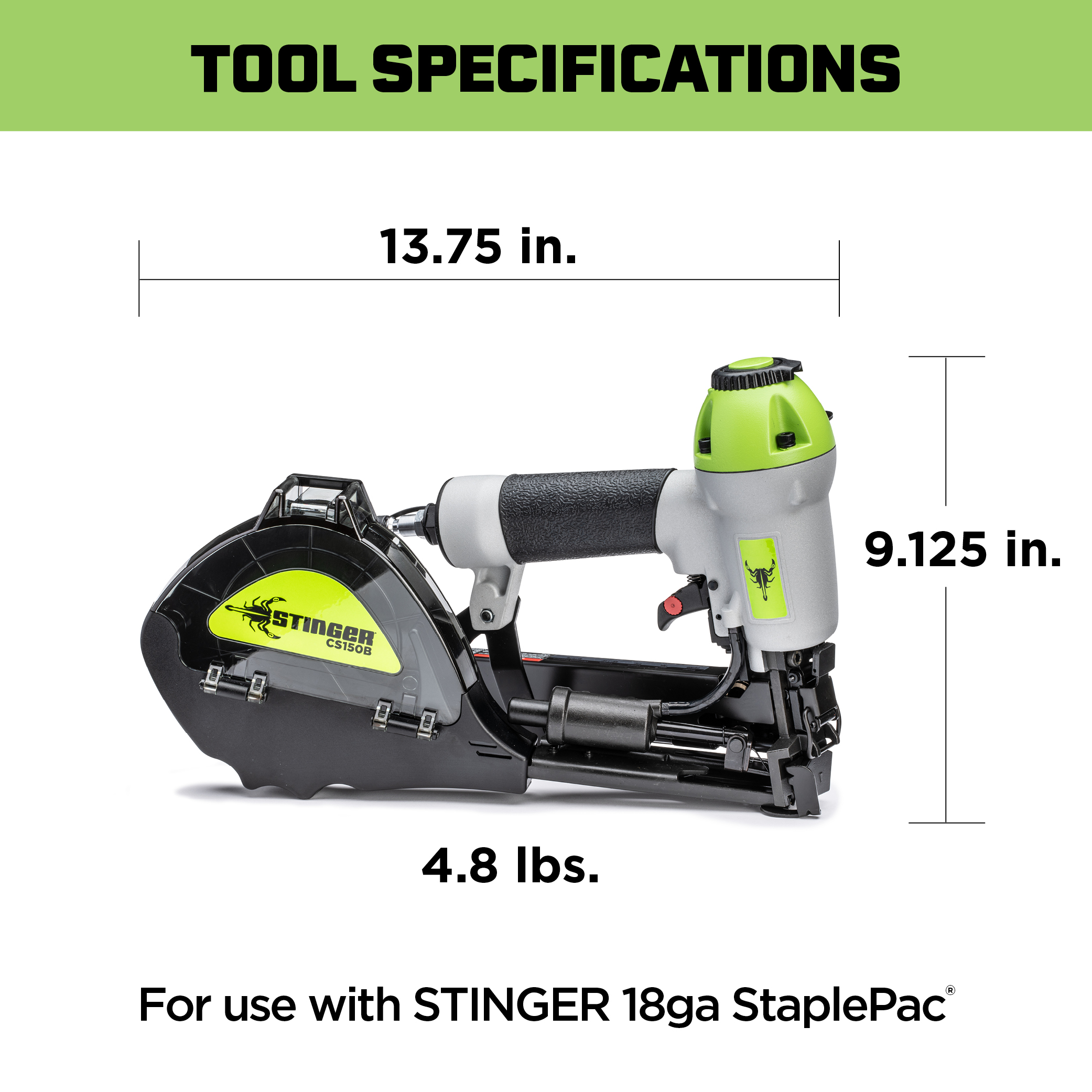 - For use with STINGER® pneumatic 18ga STAPLEPAC® only.