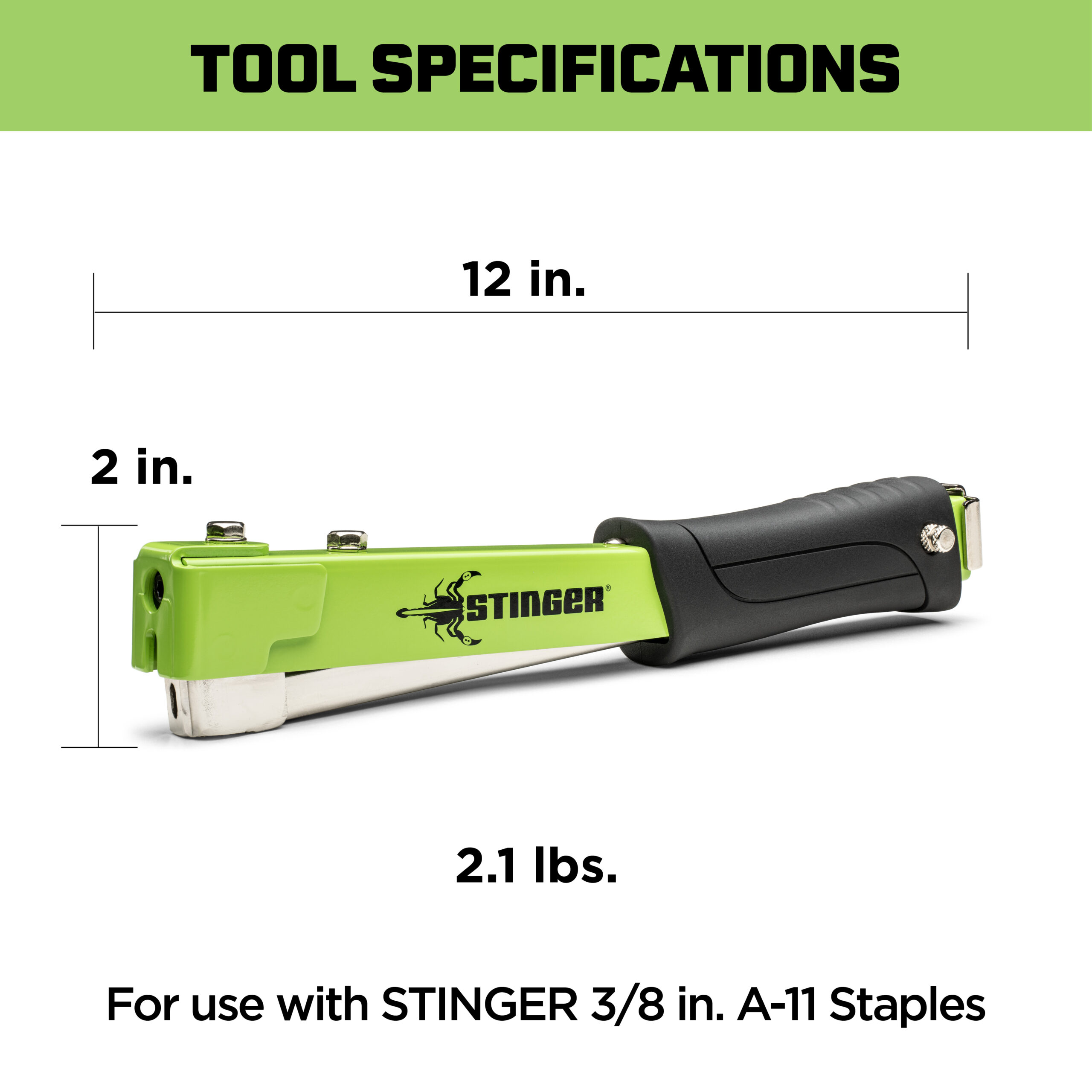 - Recommended for use with STINGER® 3/8 in. A-11 staples for best performance.