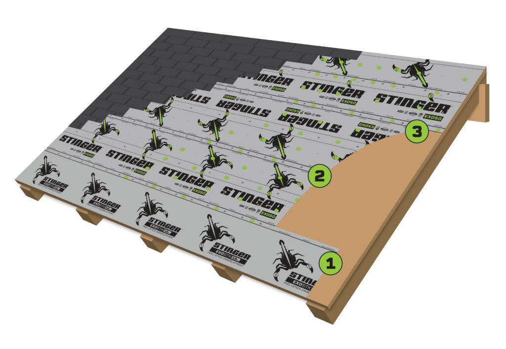 - EXOSTK bonds tight, seals around every nail, and holds strong in extreme heat and cold – keeping moisture out where it matters most.